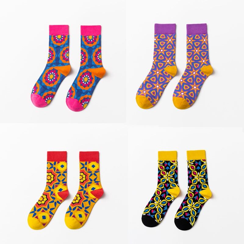 甘酸っぱいカラーの万華鏡ソックスが集まった、4足セット。