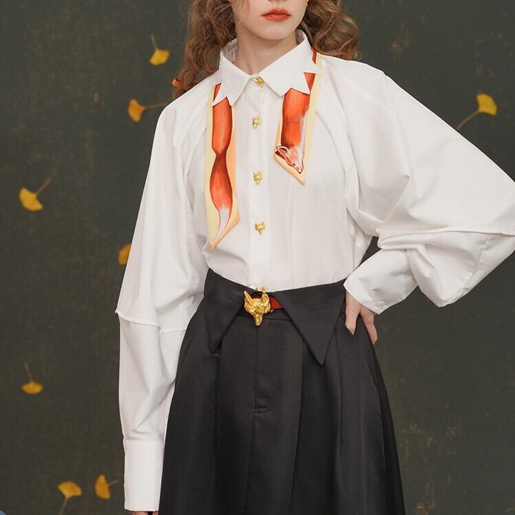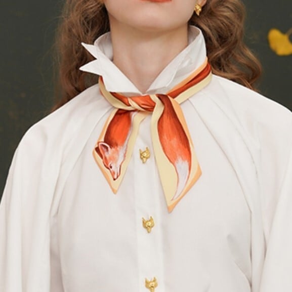 甘くなりすぎない、ちょっと大人なデザインのキツネスカーフ。