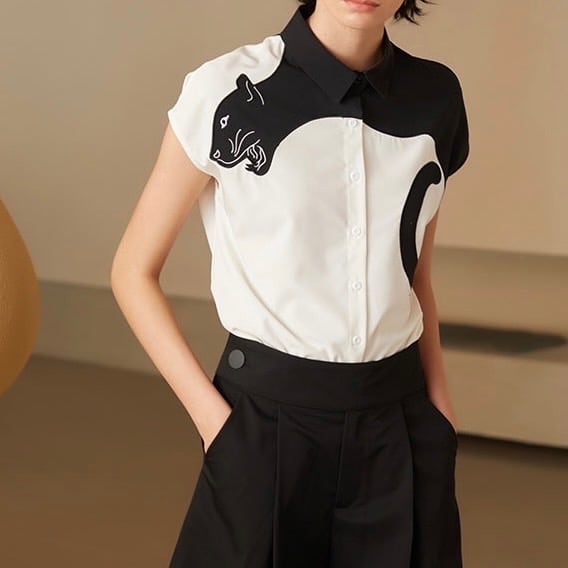 【Camoooni】アニマル柄ノースリーブシャツ 10346