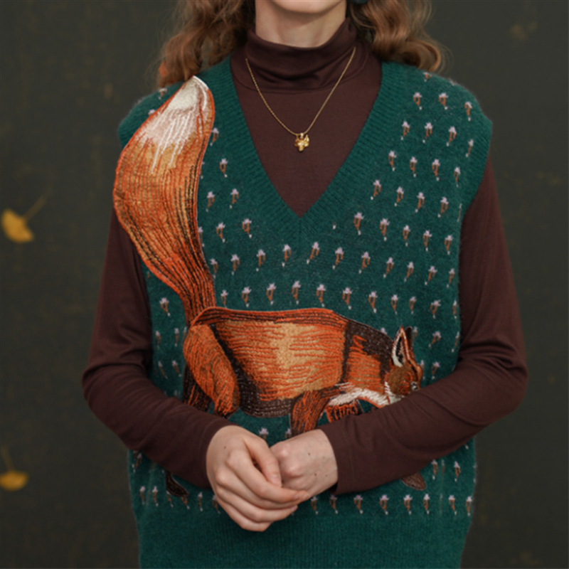 【Camoooni】キツネデザインVネックニットベスト 2color 10363