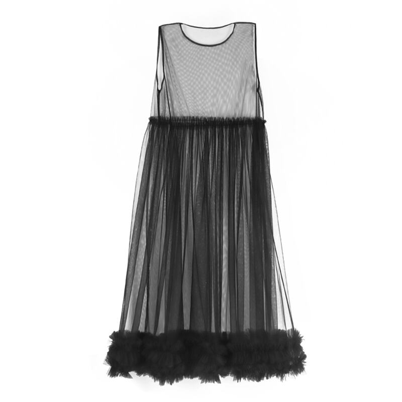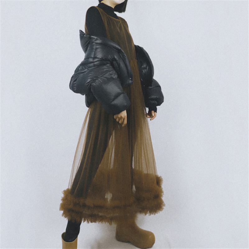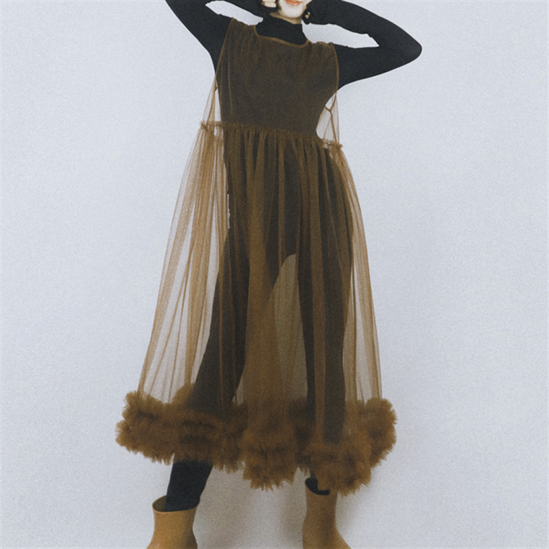 【Tea Tree】シアーメッシュフリルボリュームワンピース 3color 10382