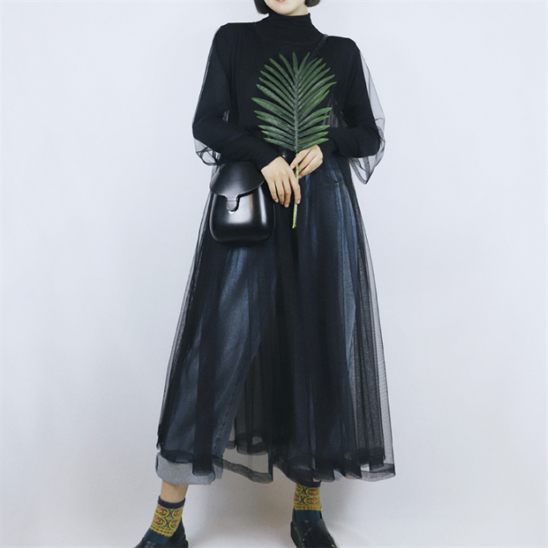 重ね着しやすい軽い着心地の長袖シアーワンピースです。