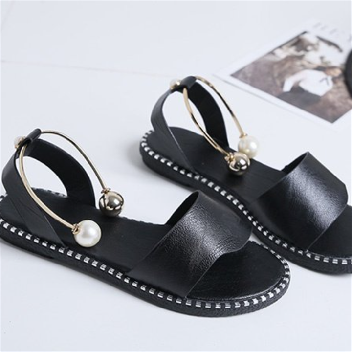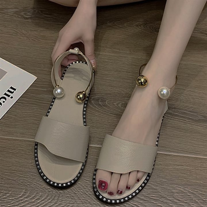 パール×メタルボールのアンクルストラップがキュートなサンダルです。