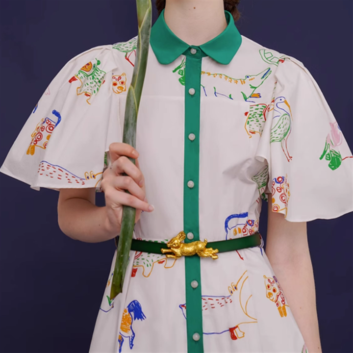 【Camoooni】手書き風アニマルイラストフレアワンピース 10565