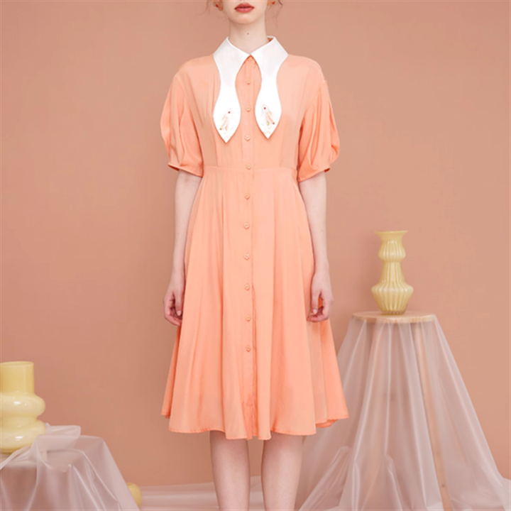 【Camoooni】ウサギ襟デザインフレアワンピース 10567