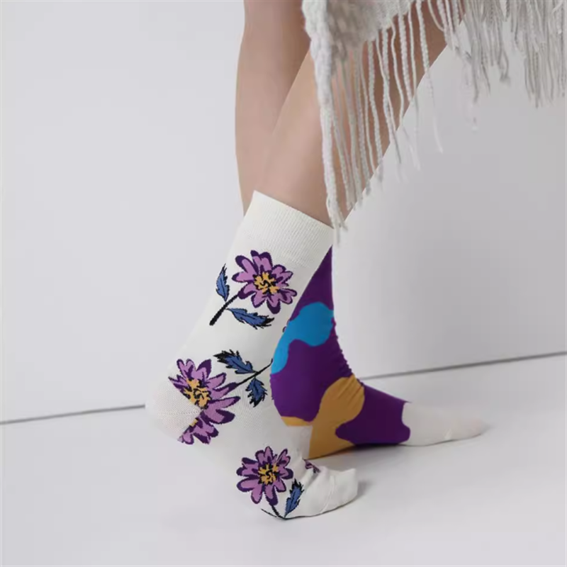 動物や花などのカラフルなクルーソックス5足セットです。