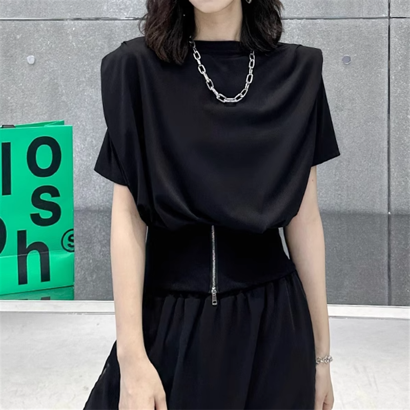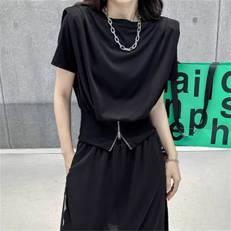 スクエア型のパワショルデザインがスタイリッシュな印象のTシャツです。