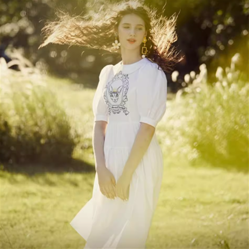【JUNGLE ME】ネコ刺繍パフスリーブワンピース 10840