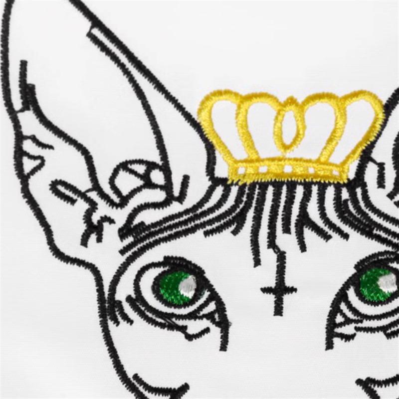 スフィンクスネコをモチーフにしたクラシカルな刺?が印象的なワンピースです。