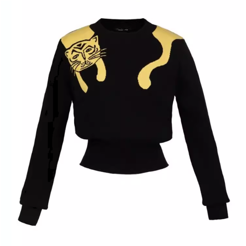 肩に絡む虎がPOPで可愛らしいニットトップスです。