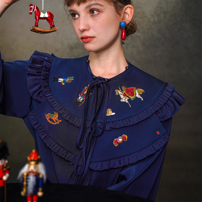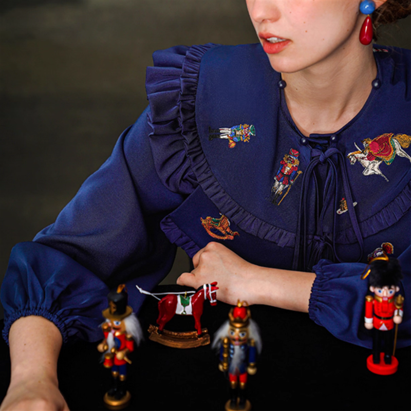 くるみ割り人形や木馬などのレトロな刺?が目を引くポイント◎