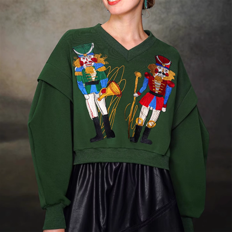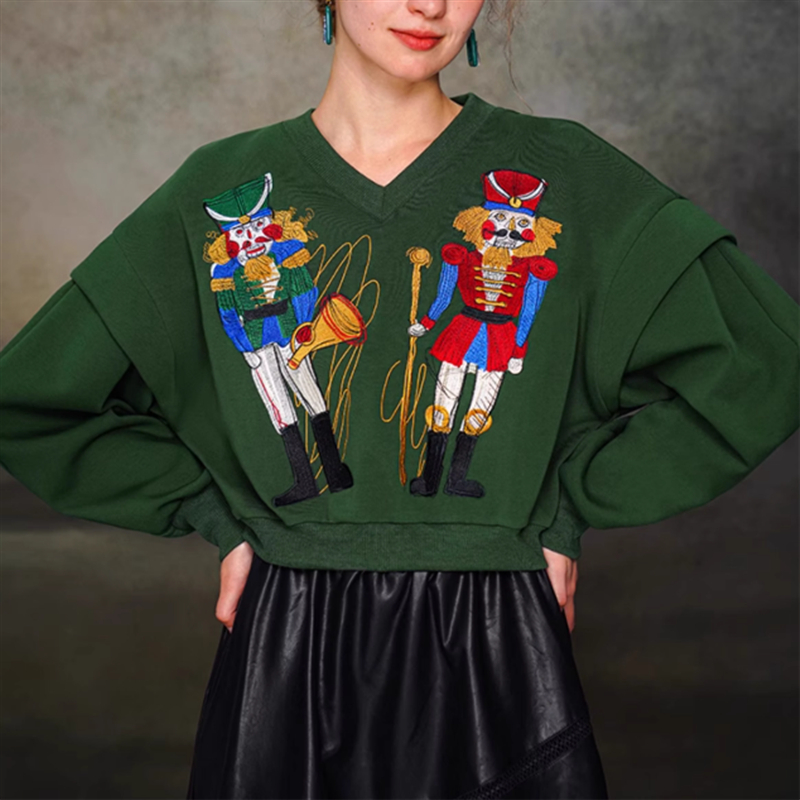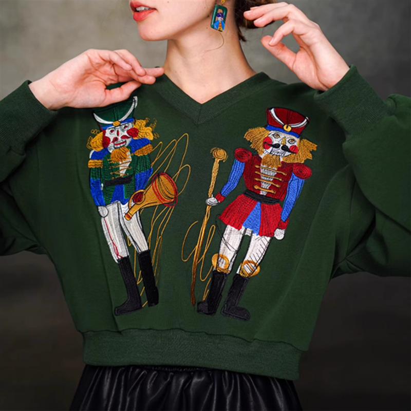 クラシカルなくるみ割り人形の刺繍をフロントにデザインしたスウェットです。