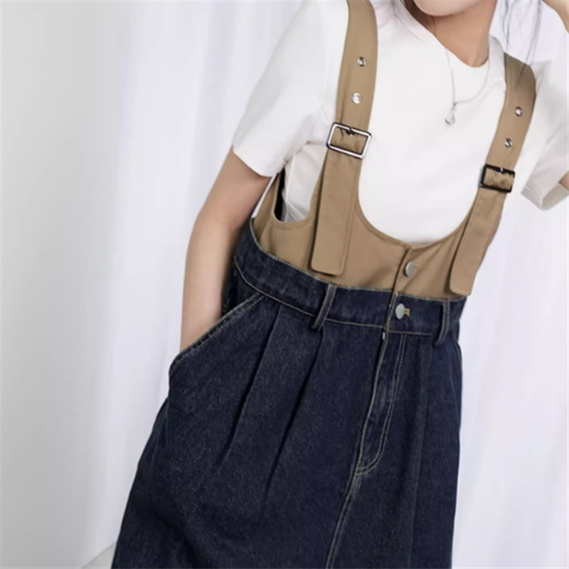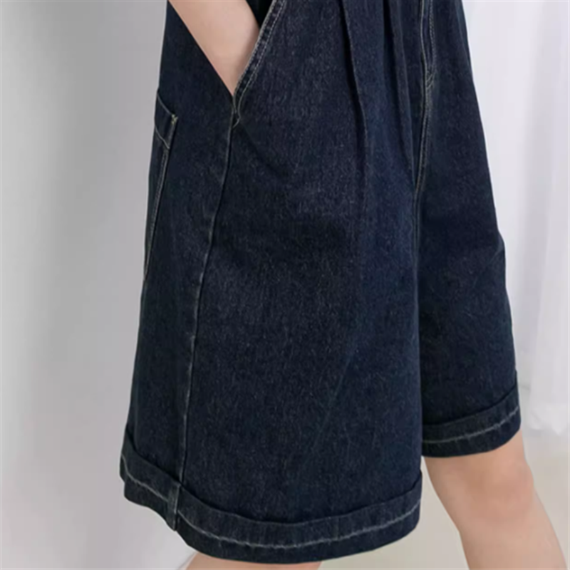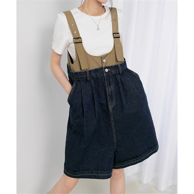 切り替えデザインが魅力的なハーフ丈のデニムサロペットです。