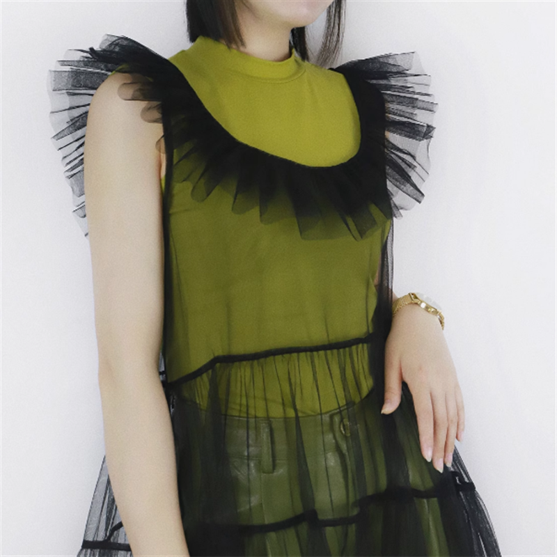 フリルで華やかに仕上げたネックライン。