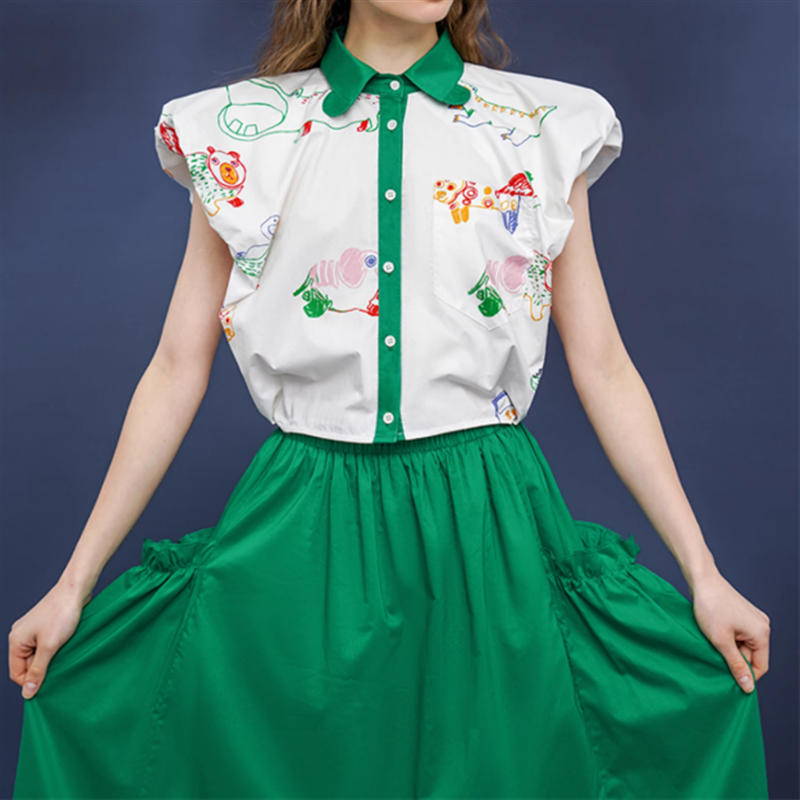 ロゴTでカジュアルに、ブラウスやデザインシャツでフェミニンなコーデもオススメです。