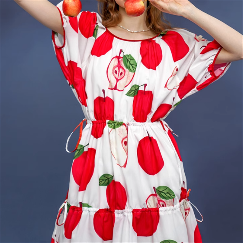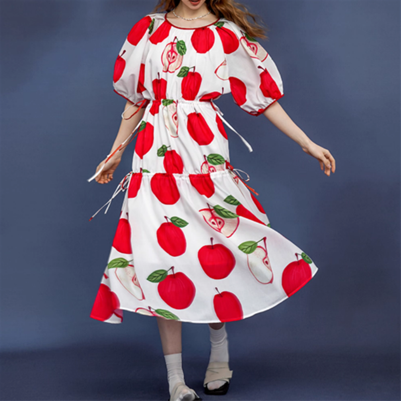 POP色使いが目を惹くりんごデザインの主役級ワンピースです。