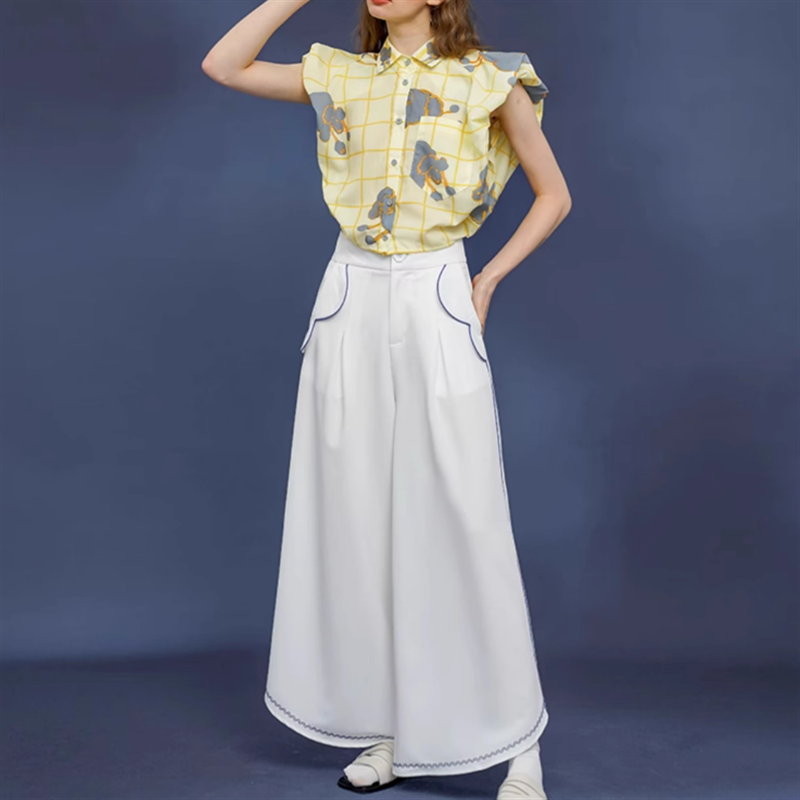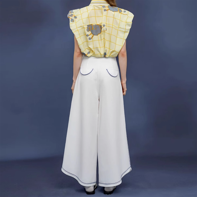 ウエスト周りはすっきりと、裾に向かってエレガントに広がるワイドシルエットパンツです。