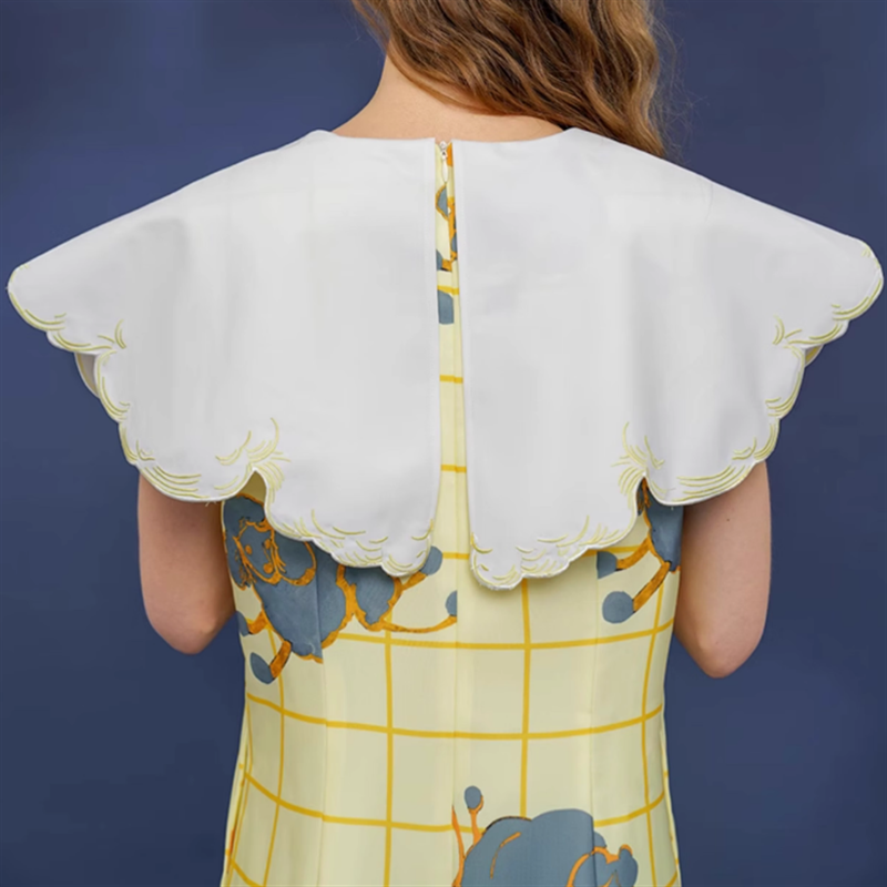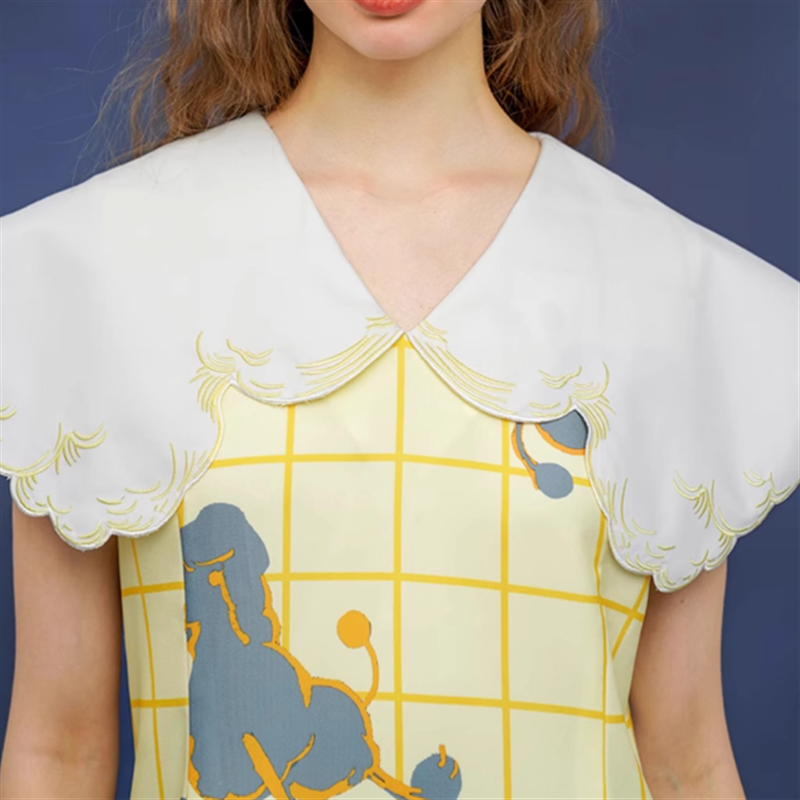 爽やかなイエローチェック柄に、ヒツジのイラストが可愛らしいロングワンピースです。