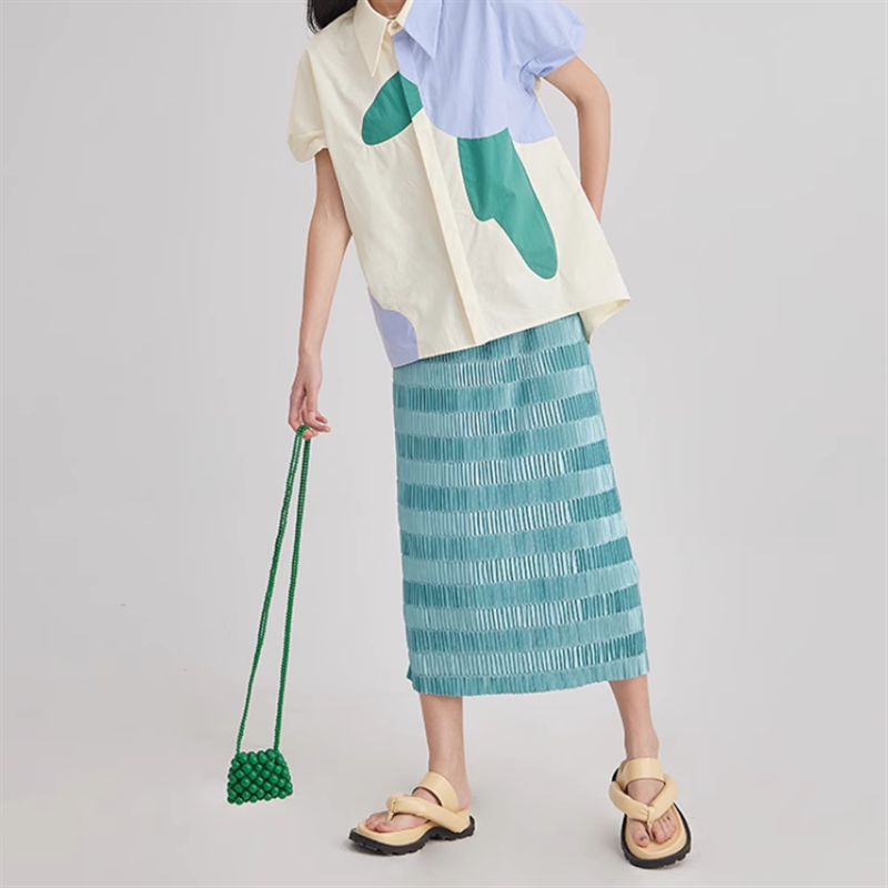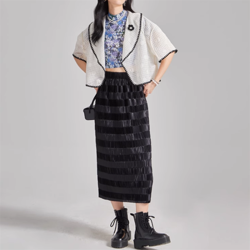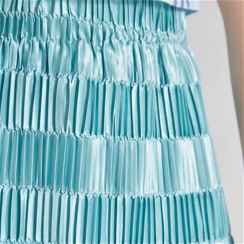 細プリーツに艶やかな生地が光りの加減で様々な表情を魅せてくれます。
