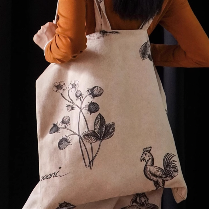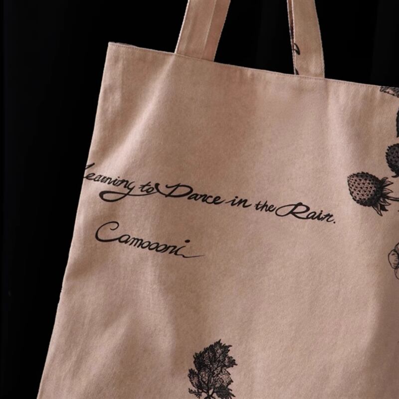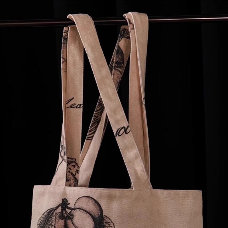 植物などをモチーフにしたレトロアートなデザインのキャンバストートバッグです。
