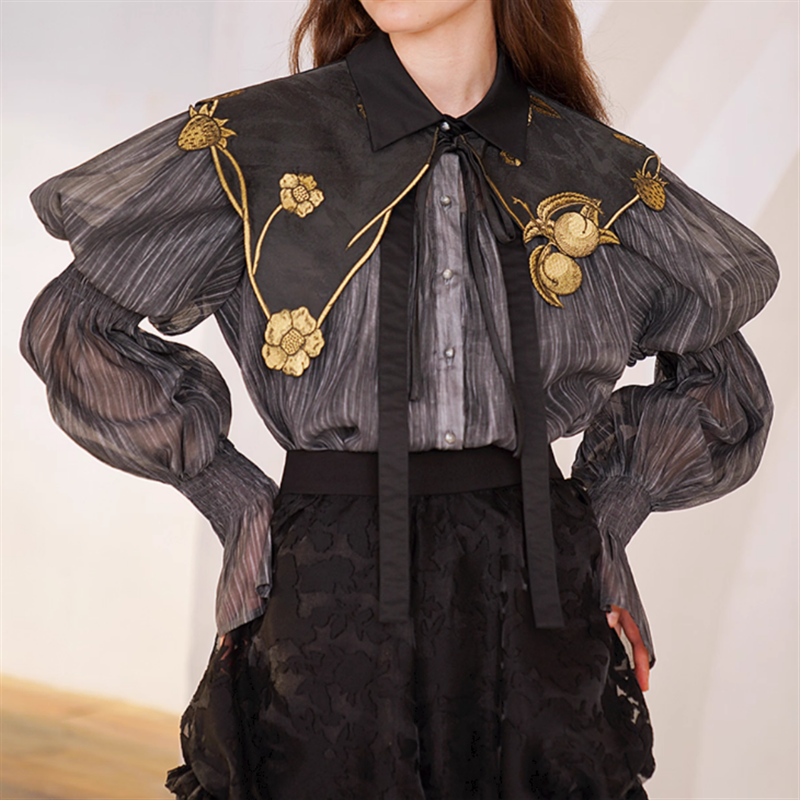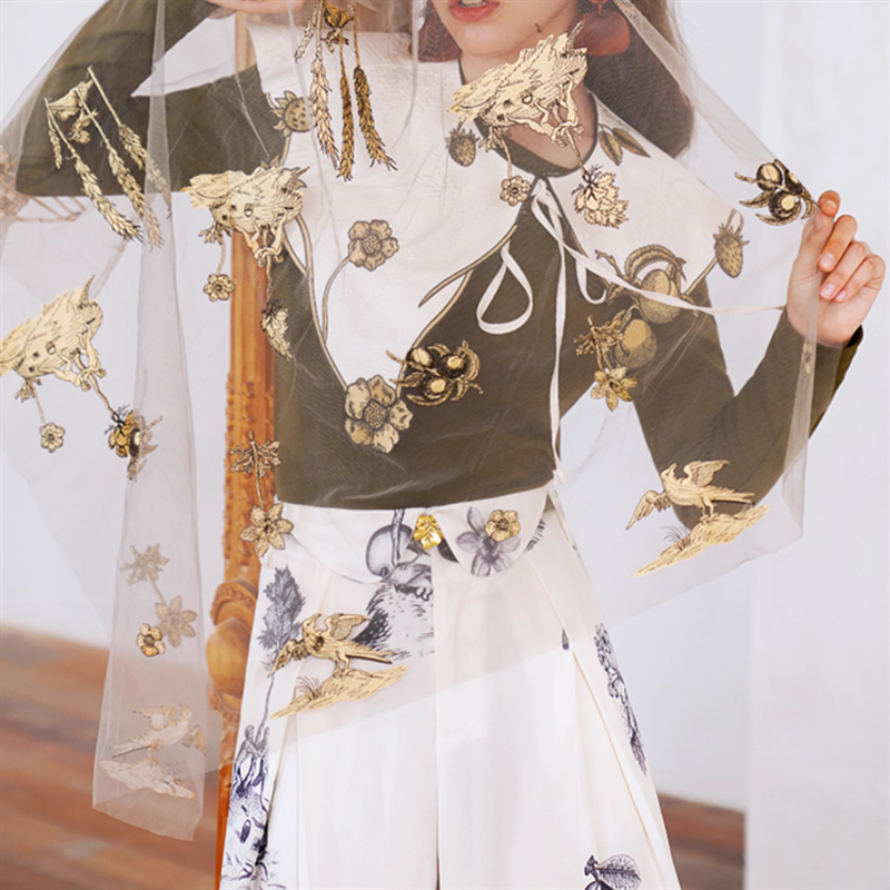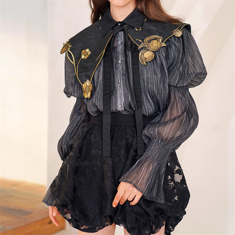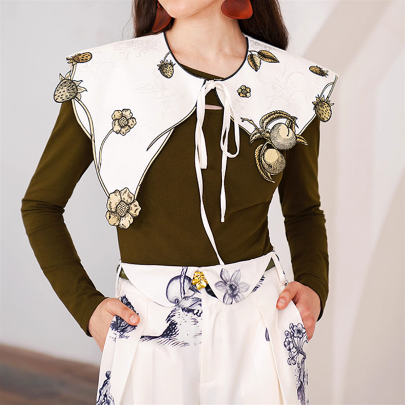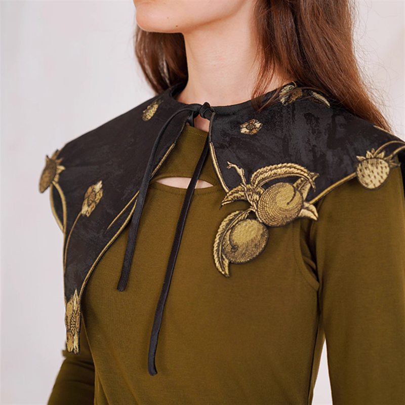 レトロなフルーツの刺繍が施された個性を引き立てる付け襟です。