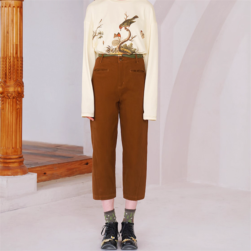 足首を見せる丈感で、ショートブーツや、ローファーにソックスを見せたコーデもオススメです。
