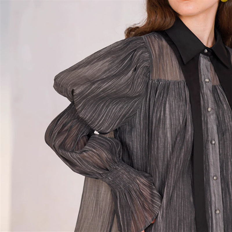 シャーリングでメリハリを付けたボリュームスリーブ。