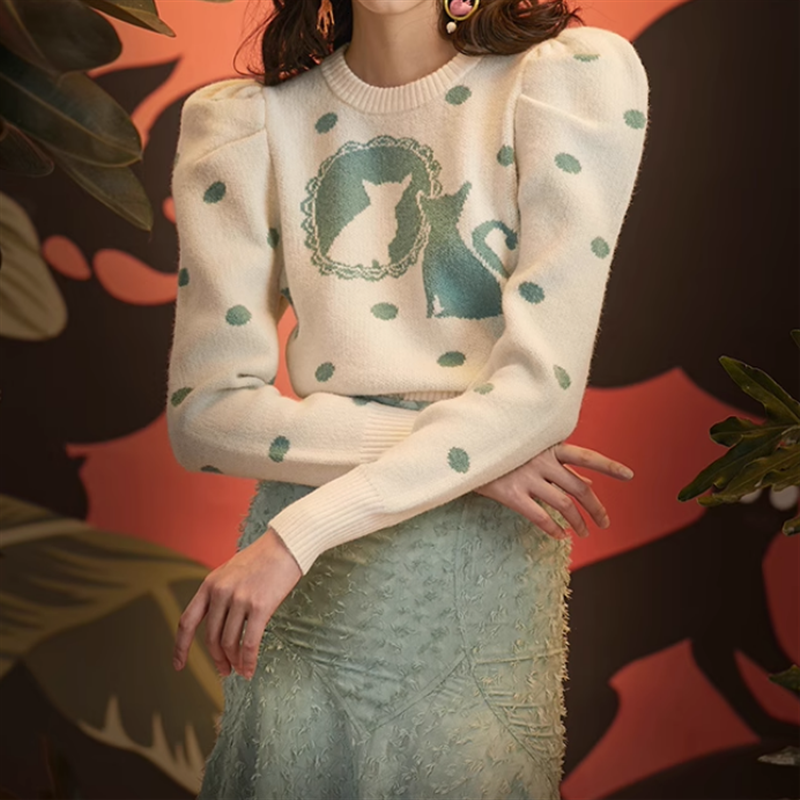 ボリューミーなパフスリーブでクラシカルに仕上げたニットトップスです。