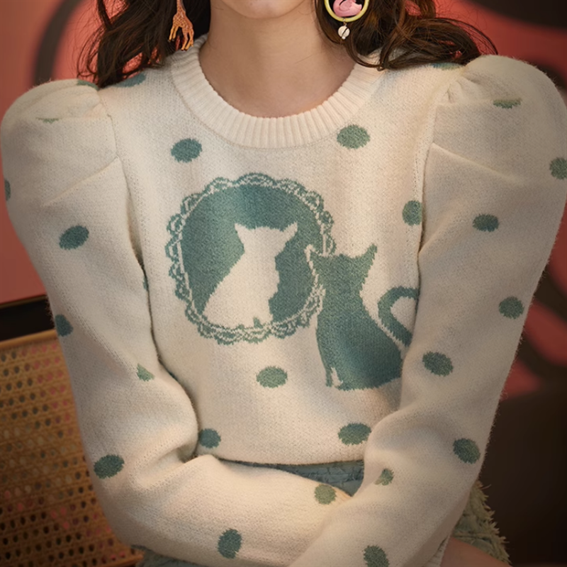 パフスリーブドットニット 10938