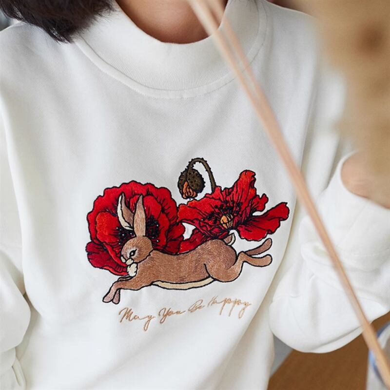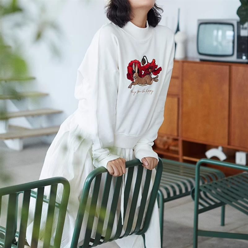 ウサギとお花の刺繍が施された大人可愛いデザイン。