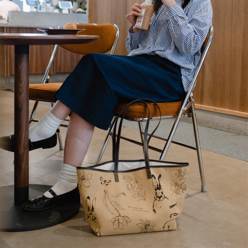ウサギとボタニカルなイラストが大人可愛いトートバッグです。