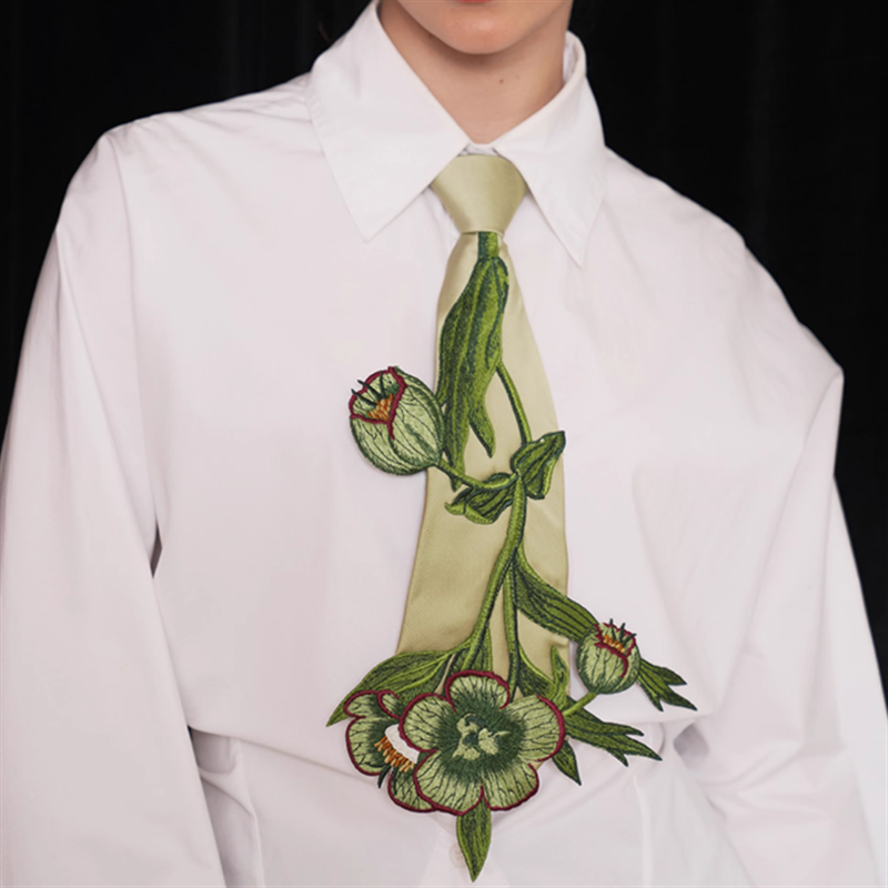 袖周りはゆったり、ウエストにタックを入れることでメリハリのあるシルエットを実現。