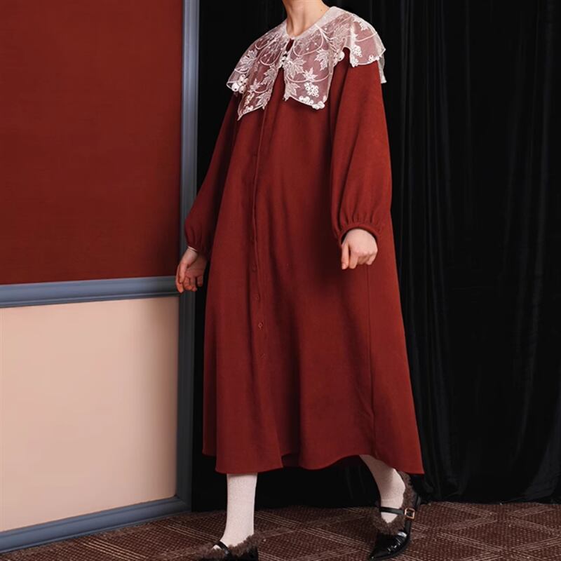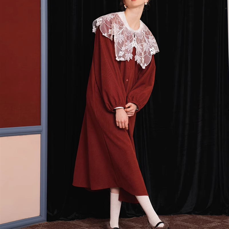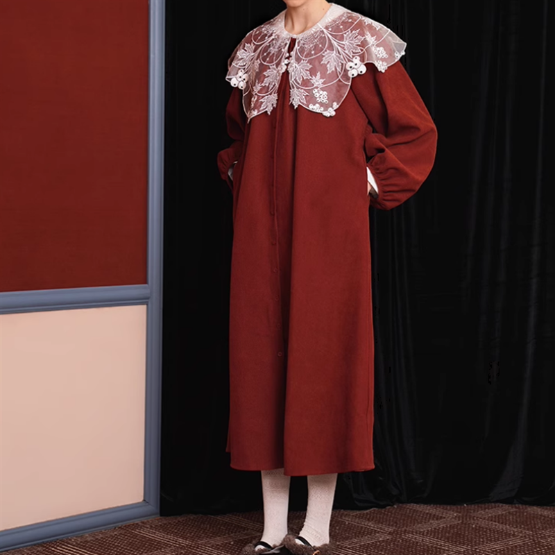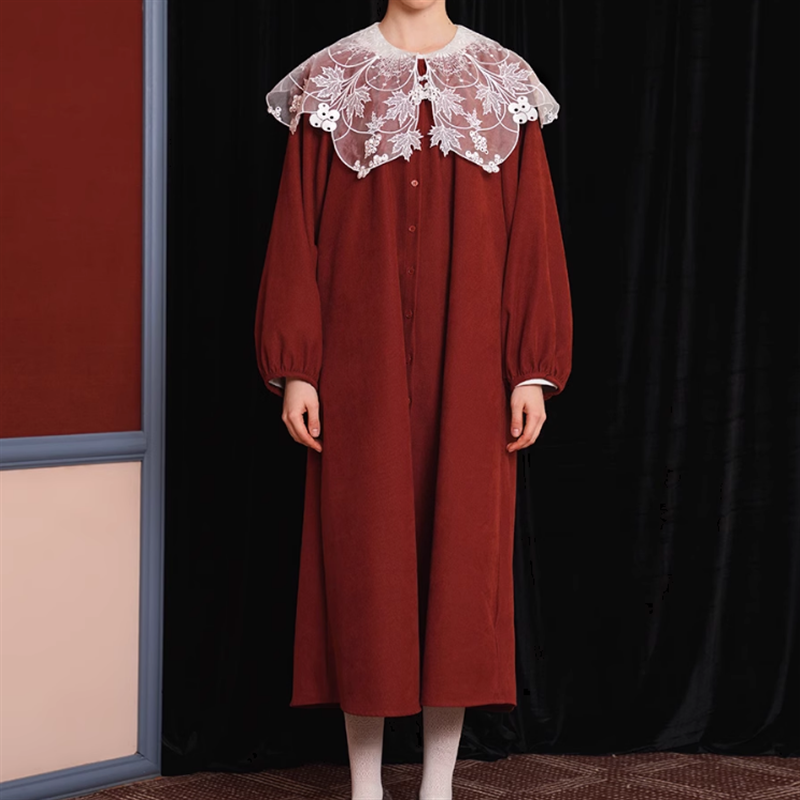 首元のたっぷりと入ったギャザーとボリューム感あるシルエットがポイントのワンピースです。