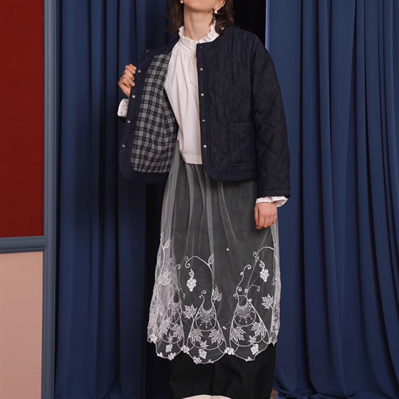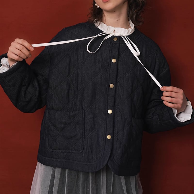 カジュアルなデニムカラーに温かみのあるキルティングを施したジャケットです。