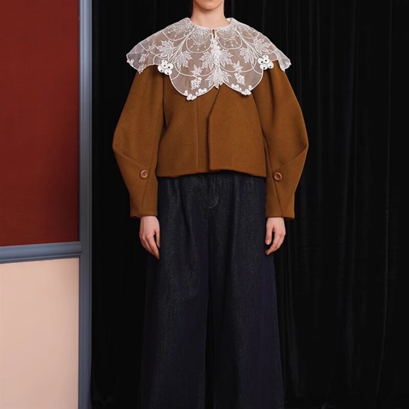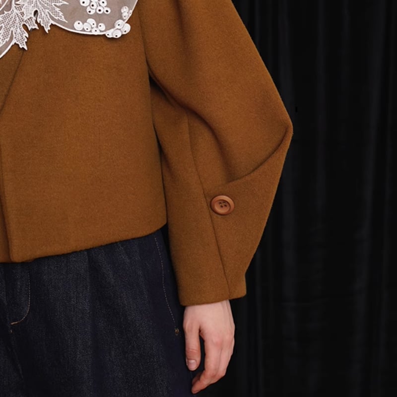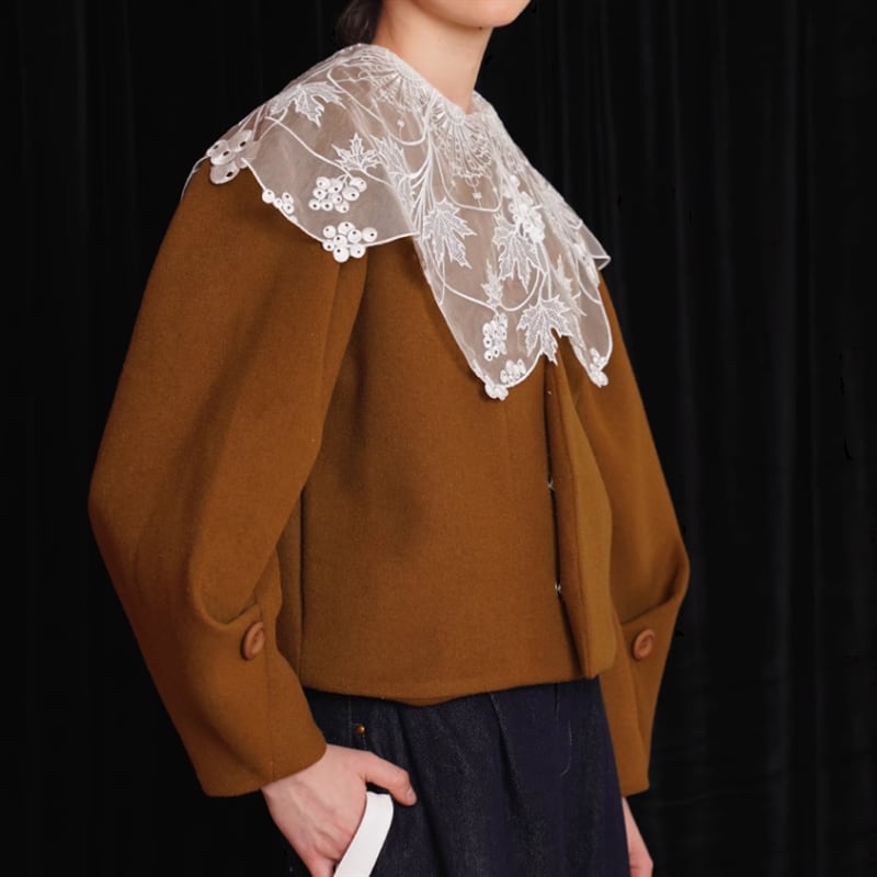 クラシカルでユニークなデザインが魅力的なショートジャケットです。