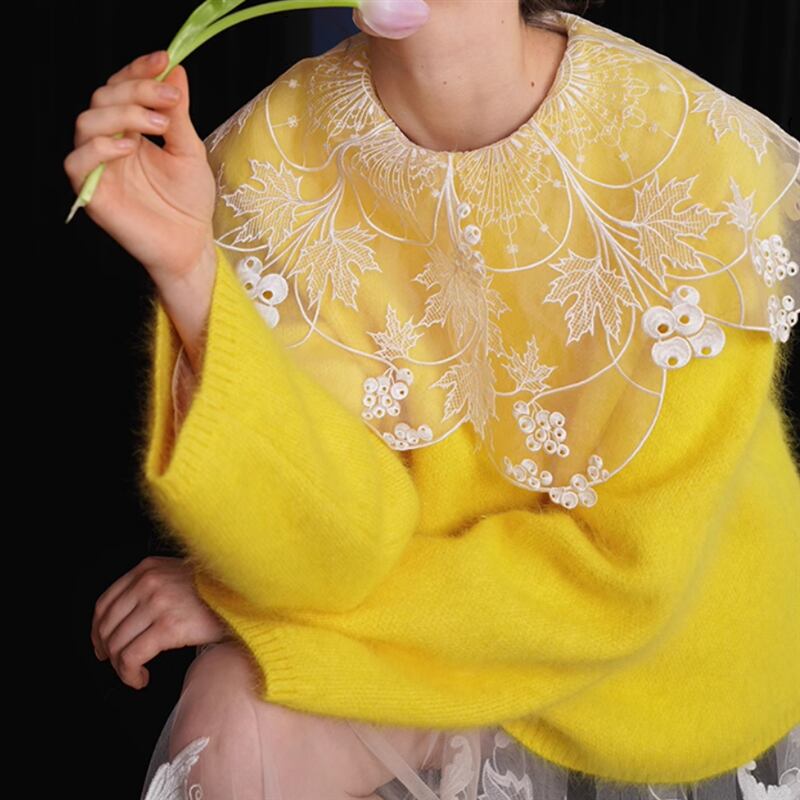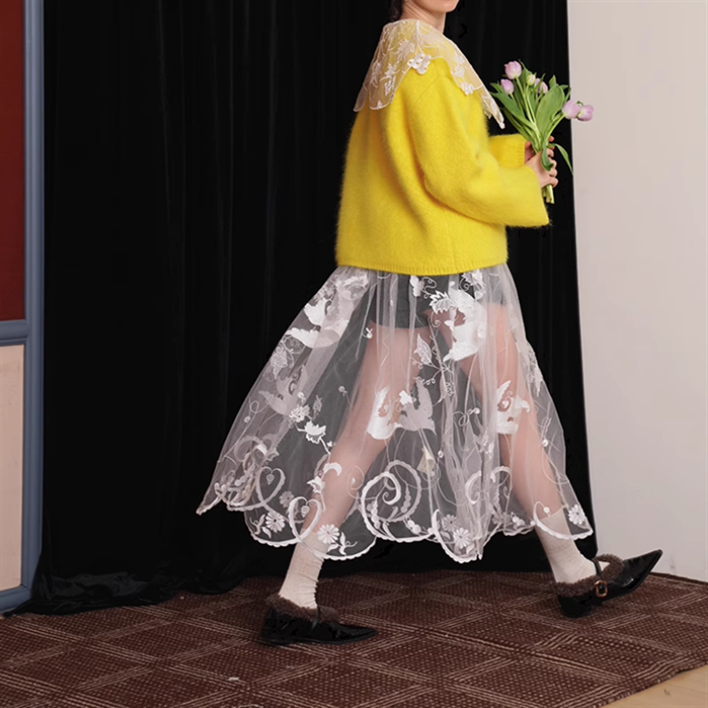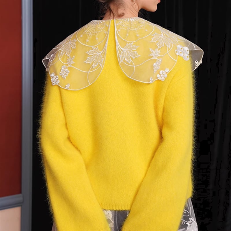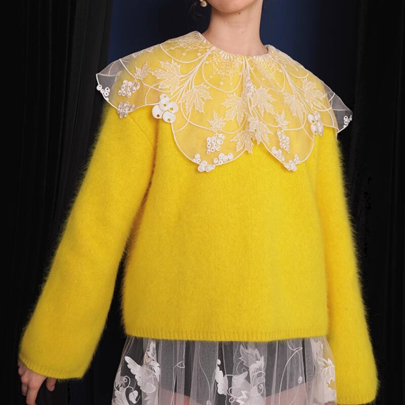 明るいイエローカラーが暗くなりがちな冬の装いに可愛く映えるアイテム。