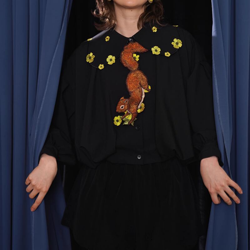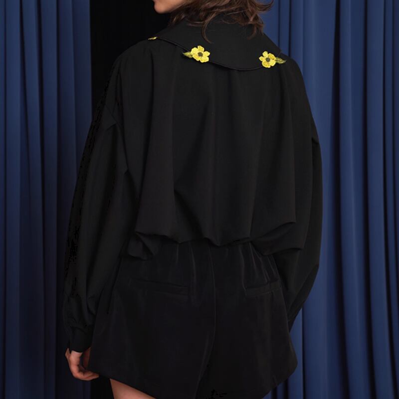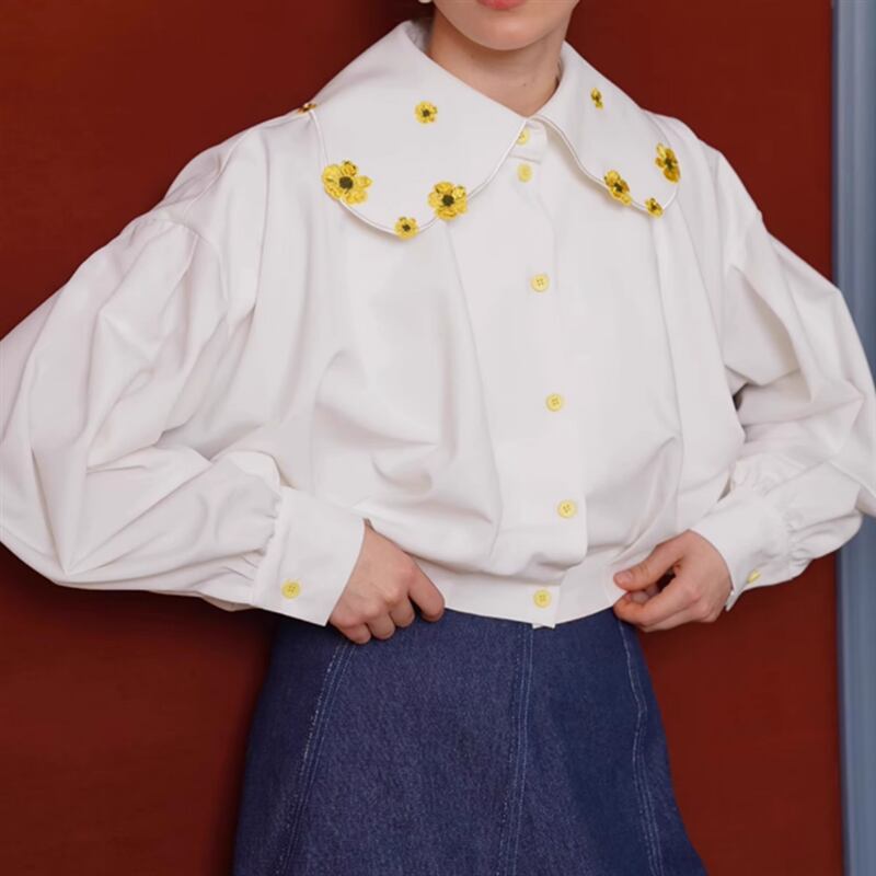 【Camoooni】フラワー刺繍ビックカラーブラウス 2color 10967