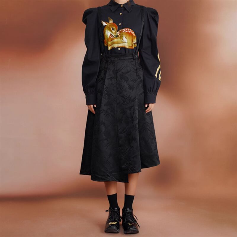 すっきりと見せスタイリングのアクセントになるサスペンダースカートです。