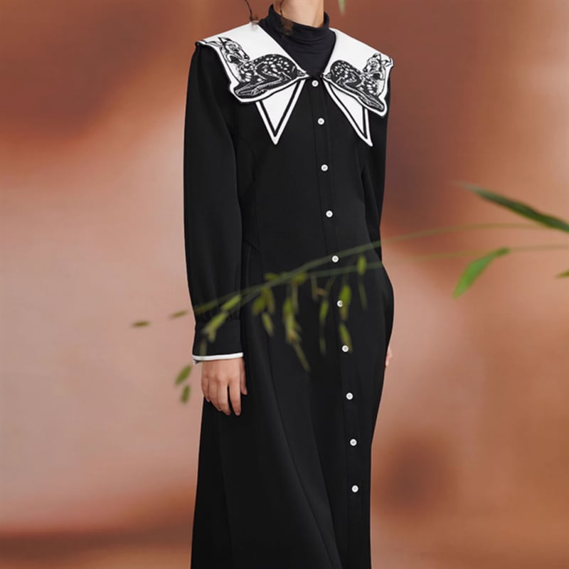 【Camoooni】小鹿刺繍ビックカラーワンピース 10971
